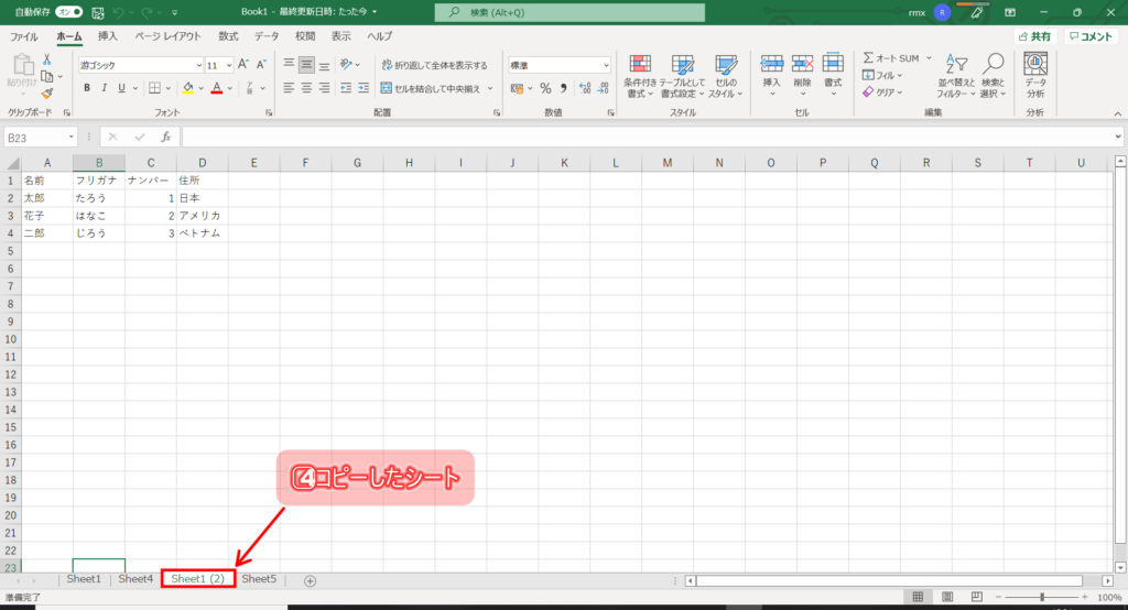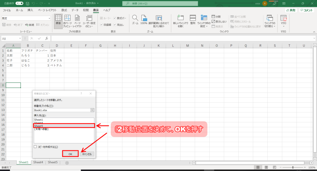 シートの移動またはコピー