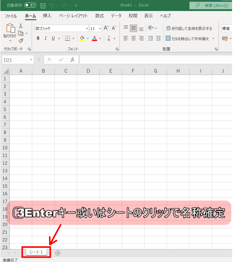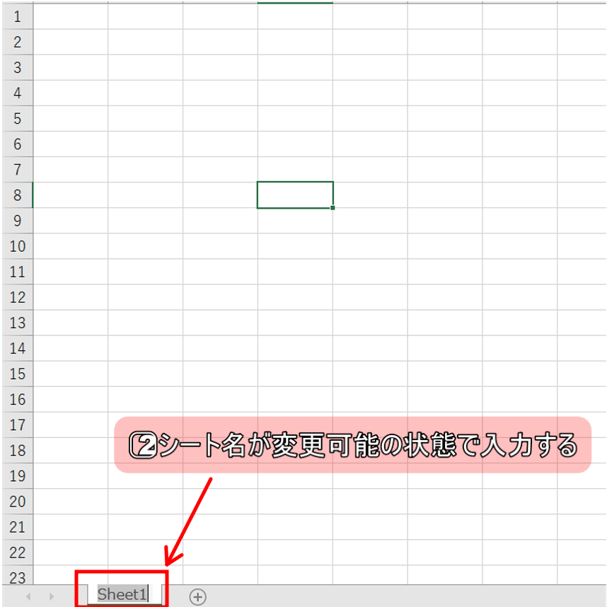 2⃣シート名変更可能の状態になった後に任意の名前を入力する。