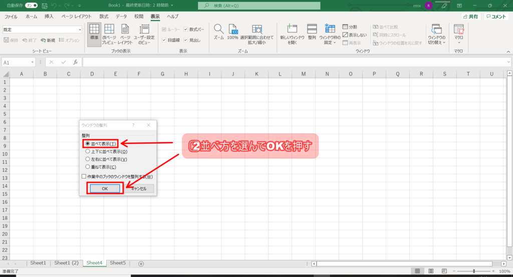 整列を使い複数ブックを同時に並べて表示