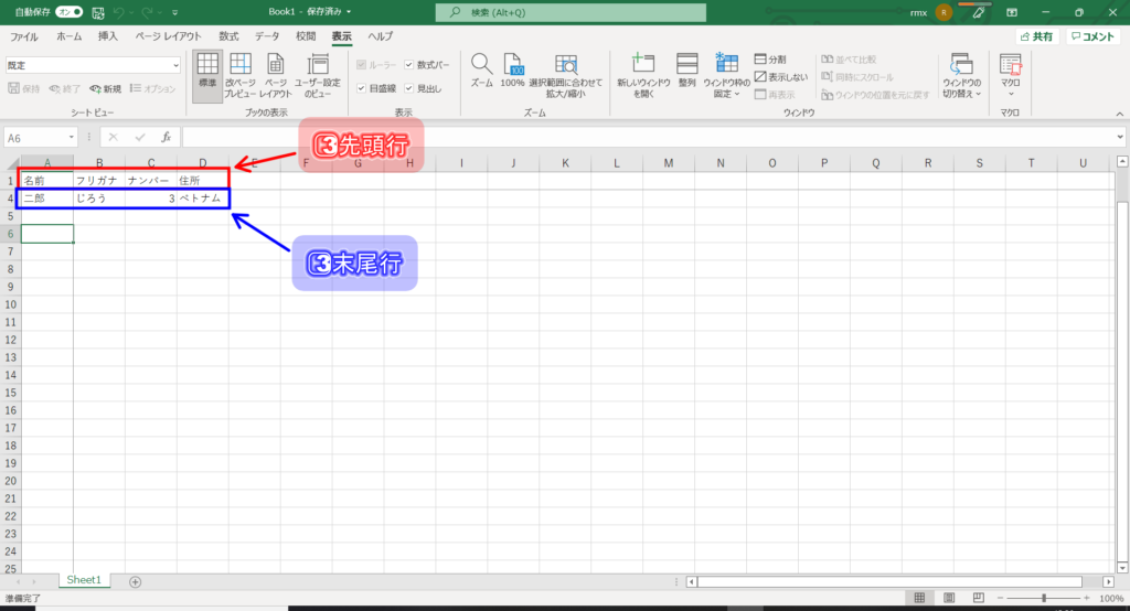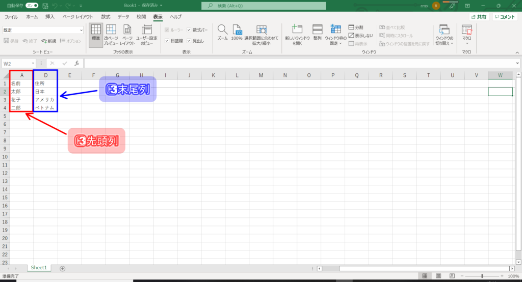 3⃣スクロールして先頭列末尾。そして、先頭行と末尾行が比較出来れば成功です。