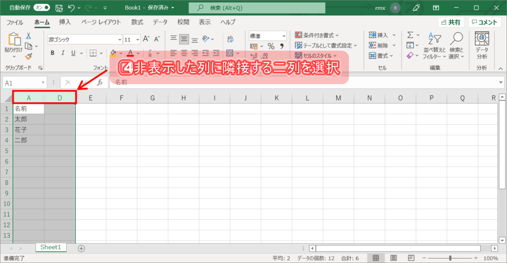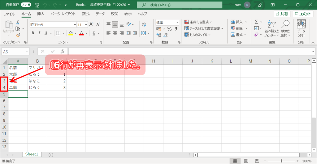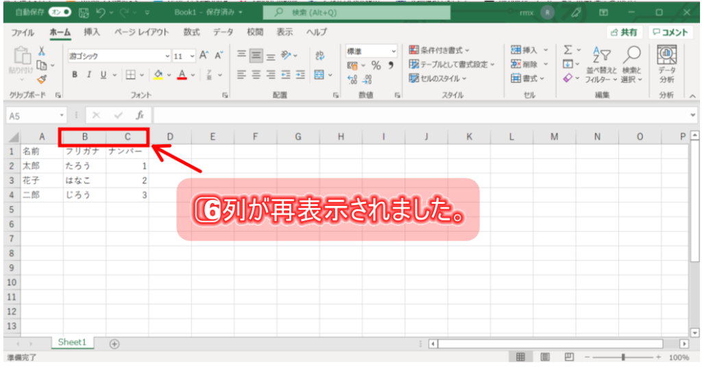 6⃣行(列)が再表示されました。