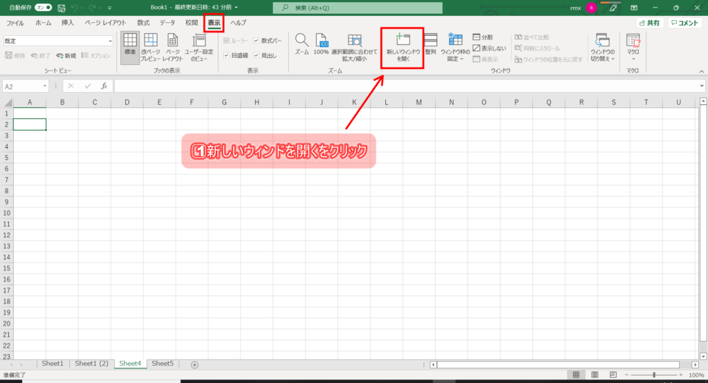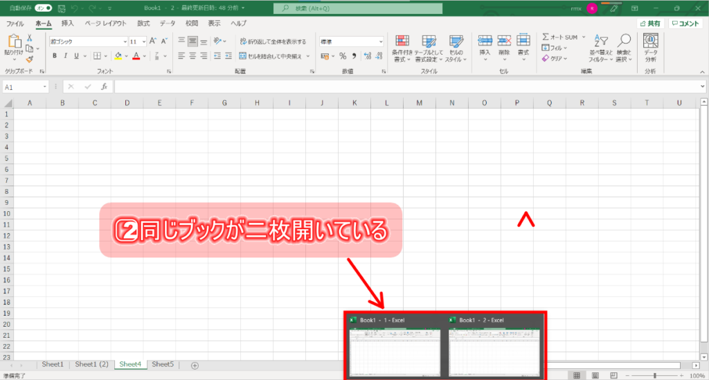 2⃣同じブック二枚開いたら成功です。