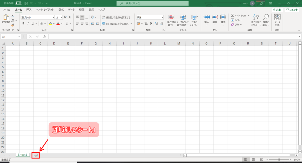 1⃣ 「新しいシート」クリックします。