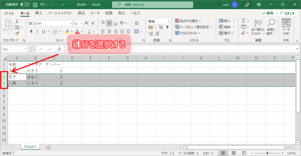 1⃣非表示にしたい行或いは列番号をドラッグして全部選択する
